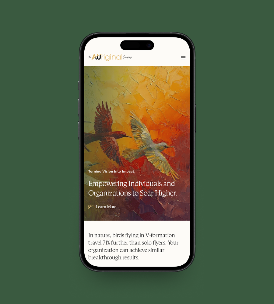 Auriginal is a Singapore-based management consultancy that helps organisations and leaders unlock collective performance through people-centric transformation, cross-generational collaboration and strategic growth frameworks. SBWD partnered with the client to design a polished, insight-driven website that clearly communicates their philosophy, expertise and service offerings, elevating their online presence and supporting meaningful connections with clients and partners.