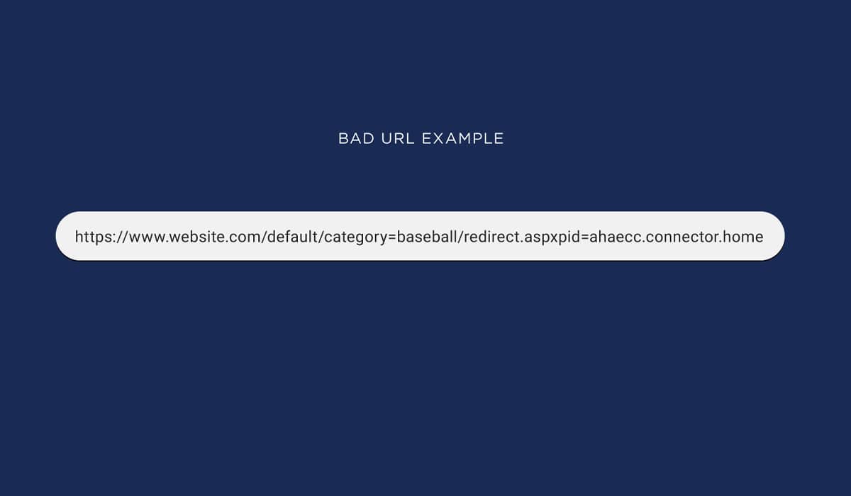 URL is the address you see in the browser address bar. Bad URL construction is bad for SEO and bad for customers to even remember the URL link. If the URL on your website is formed with ‘gibberish’ like the image below, then request from the web design company to follow a standard URL structure.